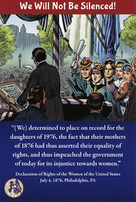 Syracuse Cultural Workers issued a postcard commemorating the July 1876 issuance of the women's rights declaration. I drew the artwork for it and Laura Martin colored it. I originally drew it for a short comics biography of Matilda Joslyn Gage, perhaps the most fascinating figure in the women's rights movement of her time. I highly recommend her book Woman, Church, and State first published in the 1890s. I suspect it will never go out of style.