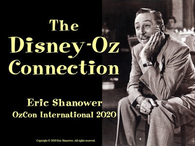 For its 2015 convention, OzCon International, the longest-running annual Oz event, celebrated the 30th anniversary of the Walt Disney Company's 1985 feature film Return to Oz. I presented the theme-related program "The Disney-Oz Connection." I discussed all the Oz and Oz-related projects the Disney company has worked on during its history, whether an individual project came to fruition or not.Five years passed. The world found itself in the grip of an epidemic. OzCon 2020 was held virtually because of Covid. The convention chairman, Colin Ayres, asked whether I'd record my Disney-Oz presentation as a feature for the virtual convention. Sure, I said. I revised and updated the presentation for 2020. You can watch it for free on OzCon's YouTube channel, the OzConnection. "The Disney-Oz Connection" is here: