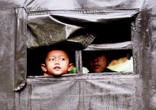 Vluchtelingen worden naar een veilige plek gebracht in Sleman, Indonesië. Ongeveer 75.000 mensen zijn geëvacueerd sinds de Indonesische vulkaan Merapi opnieuw is uitgebarsten. (3/11/2010)