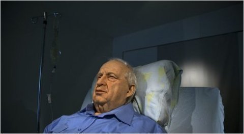 Kunstenaar Noam Braslavsky maakte een provocerende installatie van Ariel Sharon. In de stijl van Madame Tussauds wassen figuren beeldt hij de 82-jarige oud-premier levensecht en op ware grootte uit in zijn comateuze toestand. Op het ziekenhuisbed, met halfopen ogen die in de leegte staren, langzaam ademend en aan het infuus.