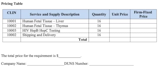 “Hi. I am a Contract Specialist with the FDA. I am tasked with the purchase of tissues suitable for H.M. research. I would like to request a quote. Please review the Statement of Work and quote your pricing as outlined.