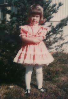 3 year-old me in a dress. As you can see,I was less than giddy about them from