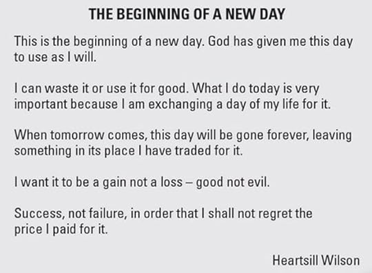 I heard this was something Bear Bryant read each morning after waking up and it has really resonated with me. Each and every single day we have on this earth is a blessing and not to be squandered. Make each one count. Our time is finite. There is so much noise out there. Find the things that matter and pursue them with reckless abandon. Disregard everything unworthy of your time and energy. Find & embrace those who make you a better person (not necessarily those who make u feel good), for as The Bear also said "I ain't never been nothing but a winner" and that mindset is something special. Now go out an carpe some diem!