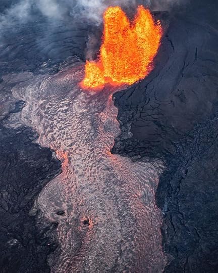 The main fissure has recorded heights of up to 250' high, which then forms a river of hot lava that has been going for nearly a month now. Apparently once glowing, the top can cool pretty quickly, which would allow one to walk on it (do not try this at home) while channeling lava in a tube, essentially going do the path of least resistance. The inner tube can stay warm for months after it's expulsion from the fissure. Photo credit @michaelthemaven