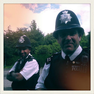 To get to Hayes I took a train and then a bus and then a short cut across some grass to get into the back of the venue. I'd been there for two minutes when these two chaps turned up because they'd seen someone "acting suspiciously" at the back of the theatre.