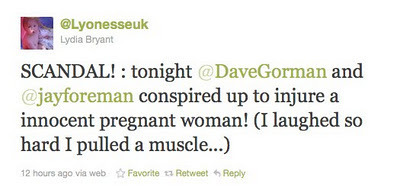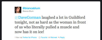 I can't quite believe it, but I've now had a second report of someone pulling a muscle laughing at the tour show. (See here for the first!)