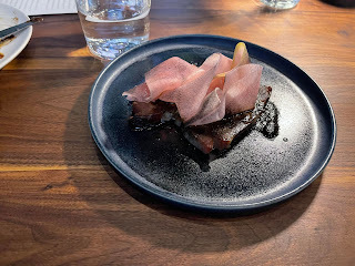 Chocolate Mousse - with smoked almond tart and Arizona olive oil