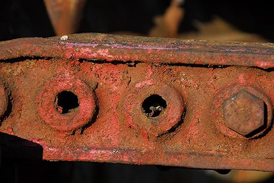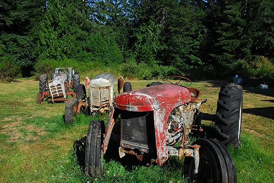 My father-in-law has what you might call an en plein air tractor shop (or graveyard, depending on your point of view). Yesterday, in the low-angled sun of early evening, the rusting tractors seemed to speak of nostalgia for a disappearing way of life and, at the same time, to take on a new and different life through their wonderful colours, textures and shapes.