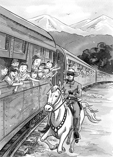 the Lone Ranger on his firy horse, Silver, would escort the evacuation train safely out of town. But Tom has to go to school, and when school is dismissed early, he has to stay home and help his mom around the house. Until the flood comes to him, and Tom must become a real-life hero and help save his family’s dairy cows. (Info on book giveaway at bottom of post.)