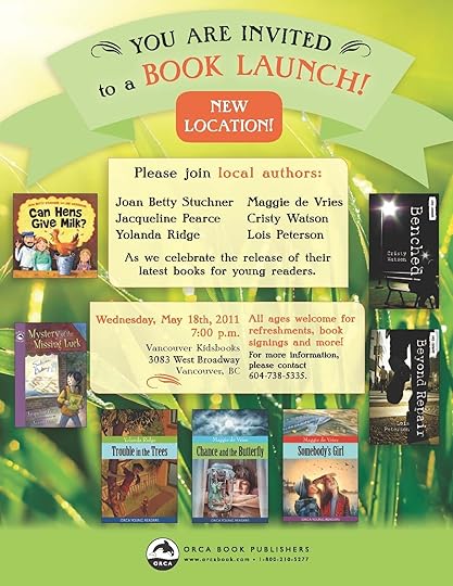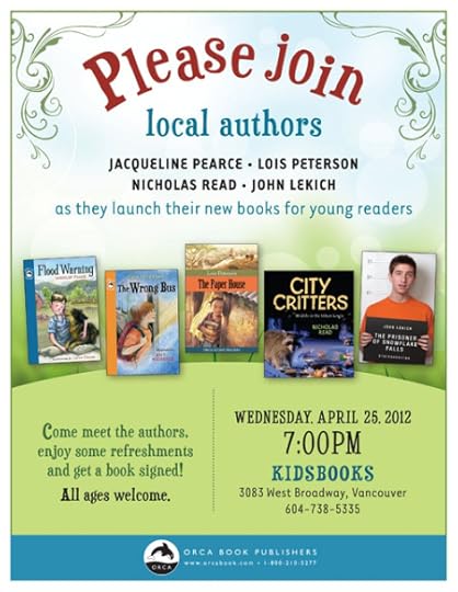 Then on Wednesday, May 18, 7pm, I'll be at Vancouver Kidsbooks in Kitsilano to join fellow authors to celebrate the launch of our new books with Orca Book Publishers: