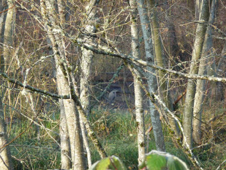 Back on the dike again, we glimpsed a great blue heron through the trees.