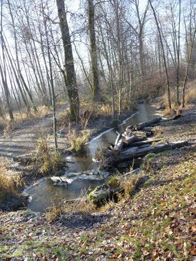 We stopped by the sewer lagoon to check if there were any eagles sitting in the big nest in the cottonwoods (none this time), then walked on top the dike beside one of the creeks that flows into the Cowichan.