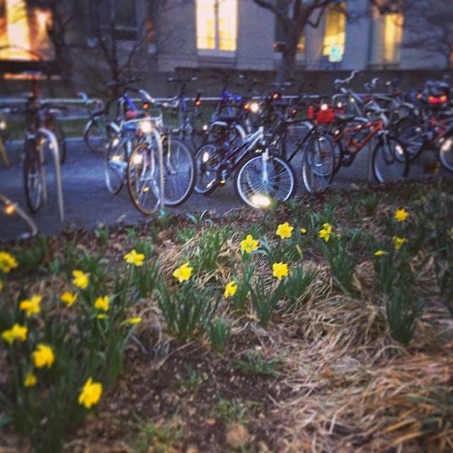 Daffodils on the Penn campusNow that spring has sprung for real, and there are colors to be seen (not just the endless gray of a landscape coated with road salt), I just want to say: