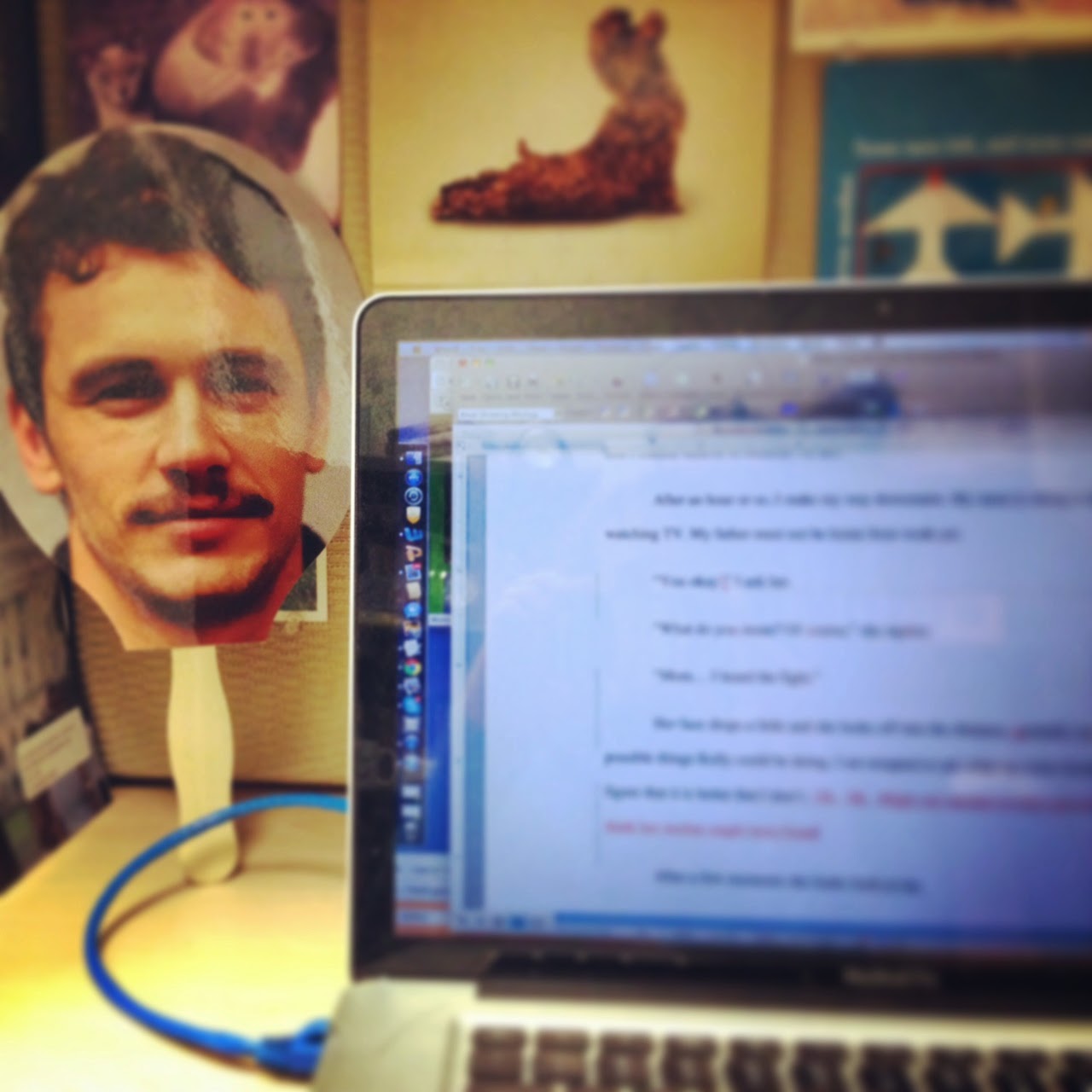 James Franco (patron saint of MFA programs) looks on while I read student stories.