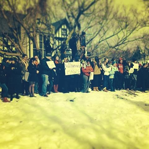 Here, from our campus newspaper, is a news story covering the protest and providing some background.