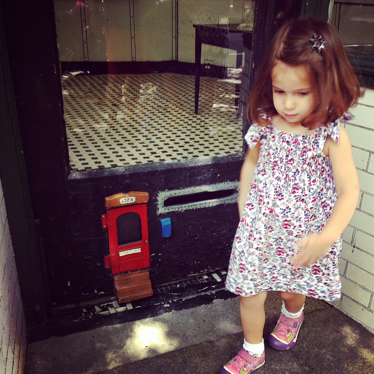 Also glimpsed on Elizabeth Street: little girl plus even littler doorway equals an Alice-in-Wonderland Moment.