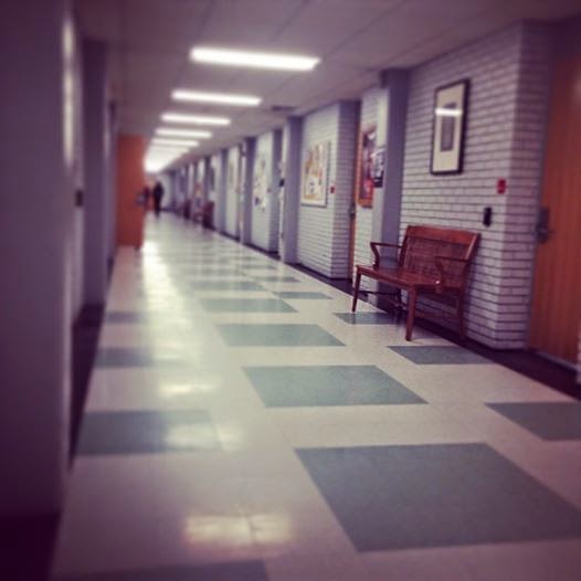 Look what I found on the third floor of Bellarmine Hall!The hopeful nervousness of freshmen waiting for their first college class to begin.