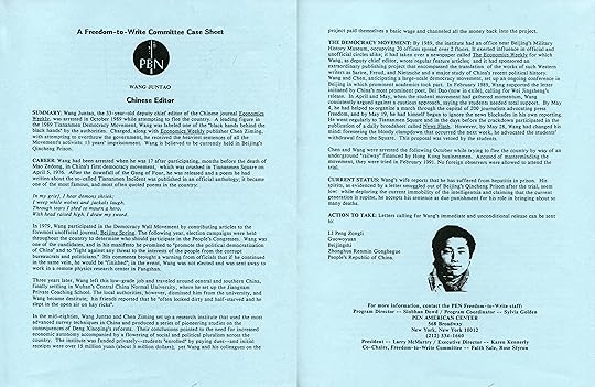 PEN International’s case sheet for Wang Juntao sent by fax and mail in 1990 to centers and members. In 1991 PEN International launched a Rapid Action Network to notify centers and to summarize the cases, actions and advocacy.