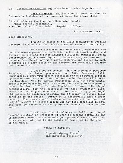 One of many letters sent by International PEN to support Salman Rushdie and to protest the ongoing fatwa.