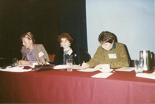 L to R: Moniika van Paemel, (Belgium Dutch-speaking PEN) and Meredith Tax (American PEN) at Women’s Committee Planning meeting at Canadian Congress, 1989