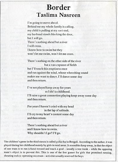 Her brother confirmed that Taslima had finally agreed that she needed to leave Bangladesh though she was reluctant. “If I go from Bangladesh, who can write about these poor women?” she asked. And yet she wasn’t able to write anything now, he said, and her life was not safe if she stayed.