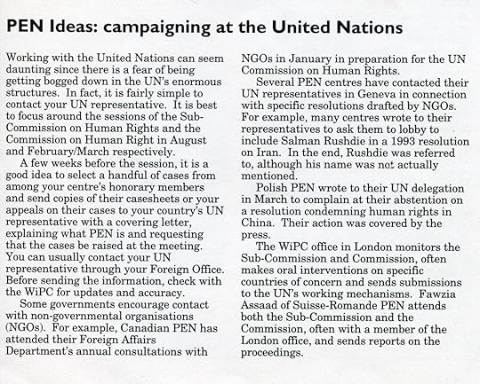 From PEN’s Centre to Centre newsletter October/November, 1994.