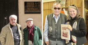 L to R: Russian PEN General Secretary Alexander (Sascha) Tkachenko and Russian PEN member outside Russian PEN office in Moscow and Rakhim Esenov, author of The Crowned Wander and Joanne Leedom-Ackerman (PEN International Secretary), 2006