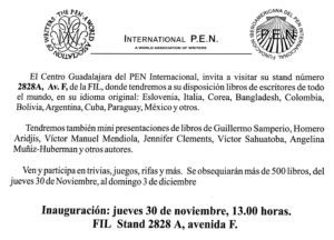 International PEN aspired to have a more robust presence at book fairs globally, but did not yet have the budget or staff. However International PEN supported centers’ activities at book fairs such as at Frankfurt, Gothenburg, and now Guadalajara. I visited the Guadalajara Book Fair as part of this initiative.