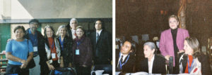 Photo Left: Meeting at 2006 Guadalajara Book Fair: María Elena Ruiz Cruz, Víctor Sahuatoba, Joanne Leedom-Ackerman, Lucina Kathmann, Luis Mario Cerda, Martha Cerda, Moisés Zamora. Photo Right: At dinner: Moisés Zamora, Nadine Gordimer, Martha Cerda, and Joanne Leedom-Ackerman