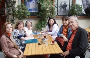 International PEN Board meeting preceding 72nd PEN Congress in Berlin, May 2006. L to R: Eugene Schoulgin (Norwegian PEN), Judith Rodriguez (Melbourne PEN), Kata Kulakova (Chair Translation & Linguistic Rights Committee), Sylvestre Clancier (French PEN), Sibila Petlevski (Croatian PEN), Chip Rolley (Chair Search Committee), Karen Efford (Program Officer), Caroline McCormack Whitaker (Executive Director), Joanne Leedom-Ackerman (PEN International Secretary), Jiří Gruša (International PEN President), Peter Firkin (standing—Centers Coordinator), Eric Lax (PEN USA West), Jane Spender (Programs Director), Judith Buckrich (Women Writers Committee Chair)