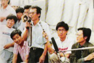 Liu Xiaobo (with megaphone) at the 1989 protests on Tiananmen Square.