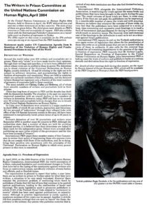 Report on PEN Writers in Prison Committee statement to UN Commission of Human Rights, April, 2004