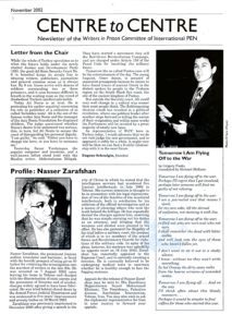 Writers in Prison Centre to Centre newsletter featuring poem by Grigory Pasko, honored guest at 70th PEN Congress and article about prisoner Nasser Zarafshan.