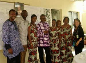 The highlight of the conference was a long road trip to Cape Coast (also known as the Gold Coast), where the first European (Portuguese) explorers arrived in the 1400s. The Portuguese built the Castle of Elmina there which still stands on the rocks above the sea. In this new/old land the Portuguese discovered gold and also began acquiring human beings to trade for European goods. British, Dutch, Danish, Prussian, and Swedish traders soon followed and built other forts along the coast. Elmina Castle was turned into a prison for men and women who were sent shackled through “the door of no return” into slavery. From this point, as well as from Gorée Island off the coast of Dakar, Senegal, the slave trade flourished for centuries as European and other traders sold men and women and goods into the Caribbean and North and South America.