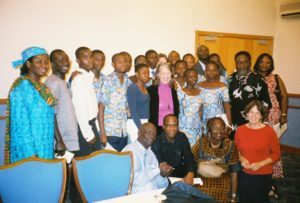 Writers and visiting students at 2005 PEN International Conference in Accra, Ghana. African PEN Centers attending conference: African Writers Abroad, Algeria, Egypt, Ghana, Guinea, Kenya, Malawi, Nigeria, Senegal, Sierra Leone, Somali-Speaking, South Africa, Uganda and Zambia as well as American and Swiss German and International PEN facilitating and note taking.