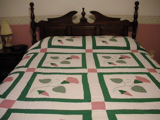 With an Appalachian heritage, I come from a long line of craftspeople. My great-aunt, embroidered, made quilts, and did other crafts to be sent to a gallery in New York City and sold there. My mother was talented and did many crafts, but interestingly, I brought her back to quilting when I became so involved in it. She used traditional patterns, but she also liked to draw her own, like this morning glory appliqued quilt she made for me.