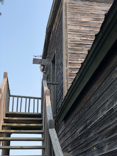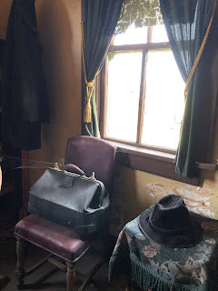 A western town was blessed to have a doctor in the early years, but 1880 Town did. His office and living quarters were above the emporium. One took the steep outside stairs to get there, and a small sign above and to one side of the door announced Dr. Adam's practice. I don't suppose he had to worry about advertising his business. If someone needed a doctor, they would find him.