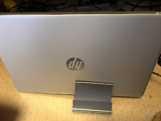 And I found this amazing little bracket that holds the laptop in my office when I'm working off my large monitor and using it like a tower. It's so simple that it's ingenious. It has a band inside that tightens up by the weight of the laptop being inserted, and it holds it firm. This system has enabled me to get more writing done faster. So, there you go. Have computer will travel.