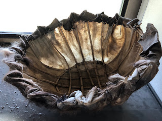 Bull boat - made from a single bison skin, stretched over tree limbs