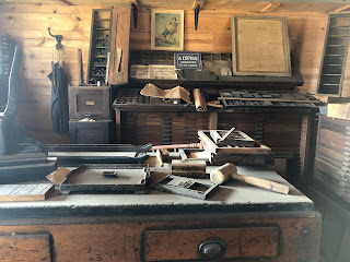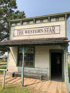 This was also true in 1880 Town in Midland, South Dakota, which I've been sharing with you since our trip there. Since the largest part of a lumber company was the wood stacked outside, the most prominent building housing wood supplies in this town was the shingle and siding company. Of course, there were a general store, hardware store, and other places to buy some building supplies as well.
