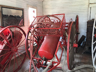 1880 Town in Midland, South Dakota, has an impressive firehouse, complete with an alarm bell. Firemen were volunteers. Inside, visitors find displays of basic, rudimentary fire implements and equipment from the 1800s. Some firehouses also served as community meeting places, and this one certainly could have.