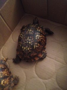 Over the years, I’ve found turtles on the road and rescued them. In 1998 I worked for the USDA in Kentucky setting up Gypsy Moth traps in five counties. My son was only five years old and my daughter was three. Some days they rode in the car with me. Each county had been divided up into quadrants and I had to find a place to set a trap in each quadrant. Most of these roads were in rural Kentucky where you might not see another car approach for miles. Also, it was the time of year when the turtles were on the move and often this required them to cross the road.