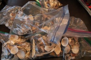 Bags of shells to be cleaned and sorted.I was rewarded with hundreds of great shells using the net, but I paid a price for them.