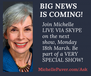 As you’ve just heard on the most recent Michelle Live, the next live show will be something special. Michelle will be making an announcement that will definitely make many of her readers VERY happy!