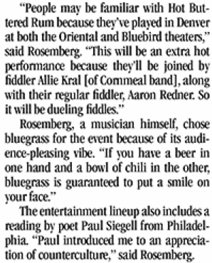 for their feature (pages 10-11) on the Lakeside Stride Bluegrass Festival that I, along with Hot Buttered Rum, will be performing at on 10/19! + GIGANTIC THANKS to Ariel Rosemberg for his hilarious shout-out! Damn hippies.
