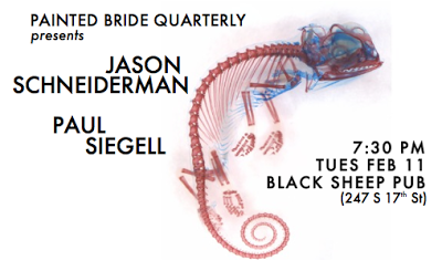 PBQ is coming back to the fold! On Tuesday, February 11 at 7:30 pm, the PBQ reading series will return to the Black Sheep Pub at 247 S. 17th St. We will feature two of our very own family members, PBQ editors Jason Schneiderman and Paul Siegell. Facebook invite here!