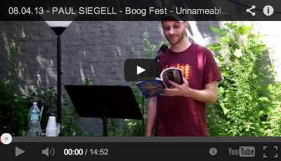 Many thanks to David Kirschenbaum, Unnameable Books, Thomas Devaney for the introduction, Kimberly Ann Southwick for the slot, and the rest of the "Welcome to Boog City" Fest audience and crew!