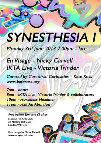 advertisement designed by Nicky Carvell for Kate Ross's Synesthesia 1 at the Notting Hill Art Club