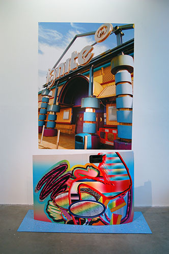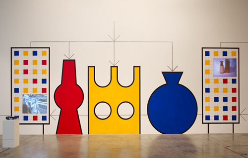 Iveson had seen the CHELSEA space News Blog from May 2011 showing Bruce McLean with a recently rediscovered archive photograph from 1971. He asked McLean if he could include the 1971 image in the publication for RE-Make/RE-model and this dialogue led to Bruce McLean making a new work especially for the show at our sister gallery.