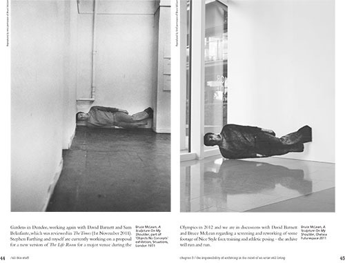 double pages from All This Stuff: Archiving The Artist juxtaposing Bruce McLean works from 1971(left) and 2011